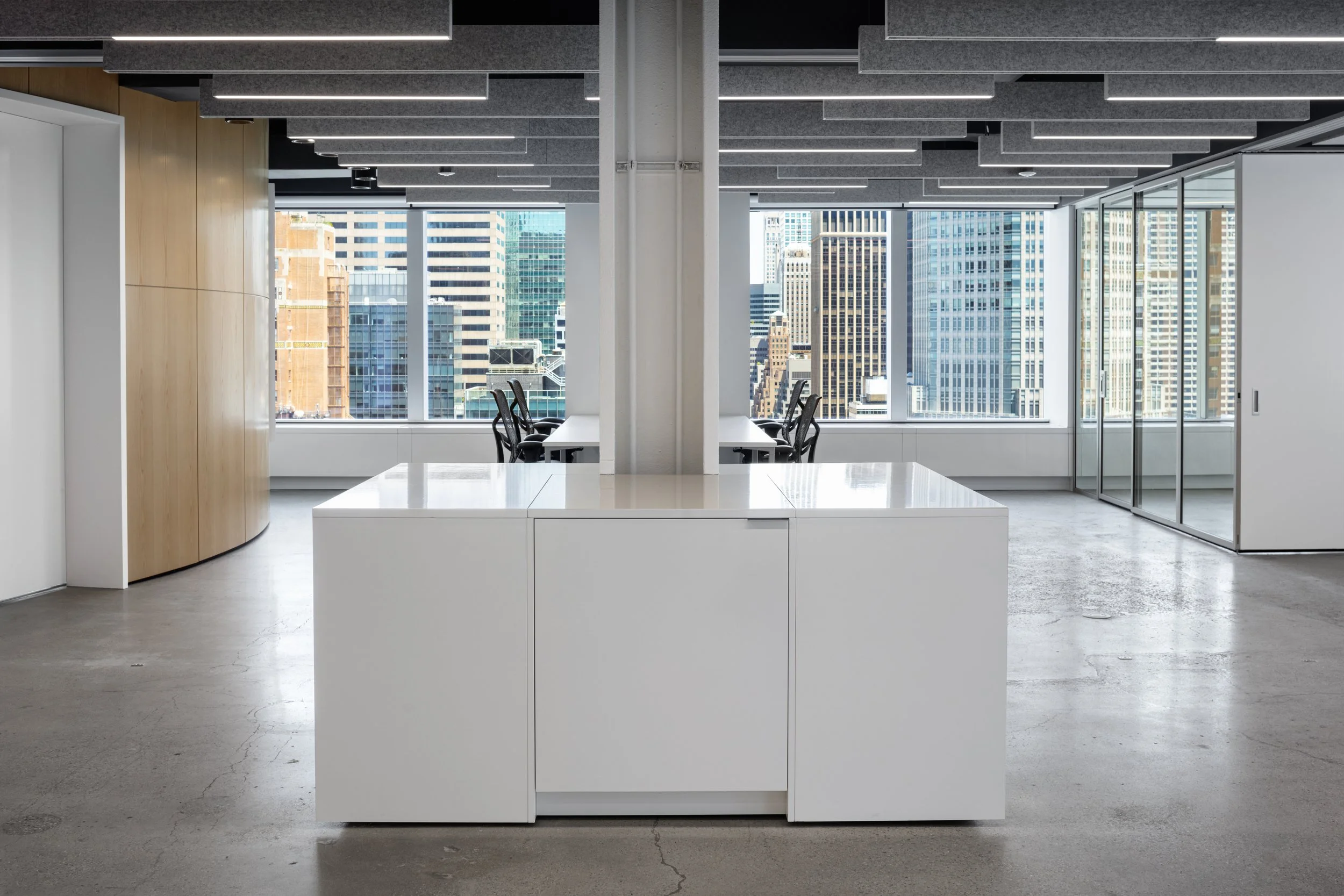 We began with extensive research. We would not create a showcase featuring fancy materials, lighting—but a new prototype for the post pandemic world. Workplaces are now changed forever. It would be not one design—but many. How can an office change, over time? How can it evolve from tenant to tenant, or on different days of the week, or with evolving flexible time with people coming in on different days?