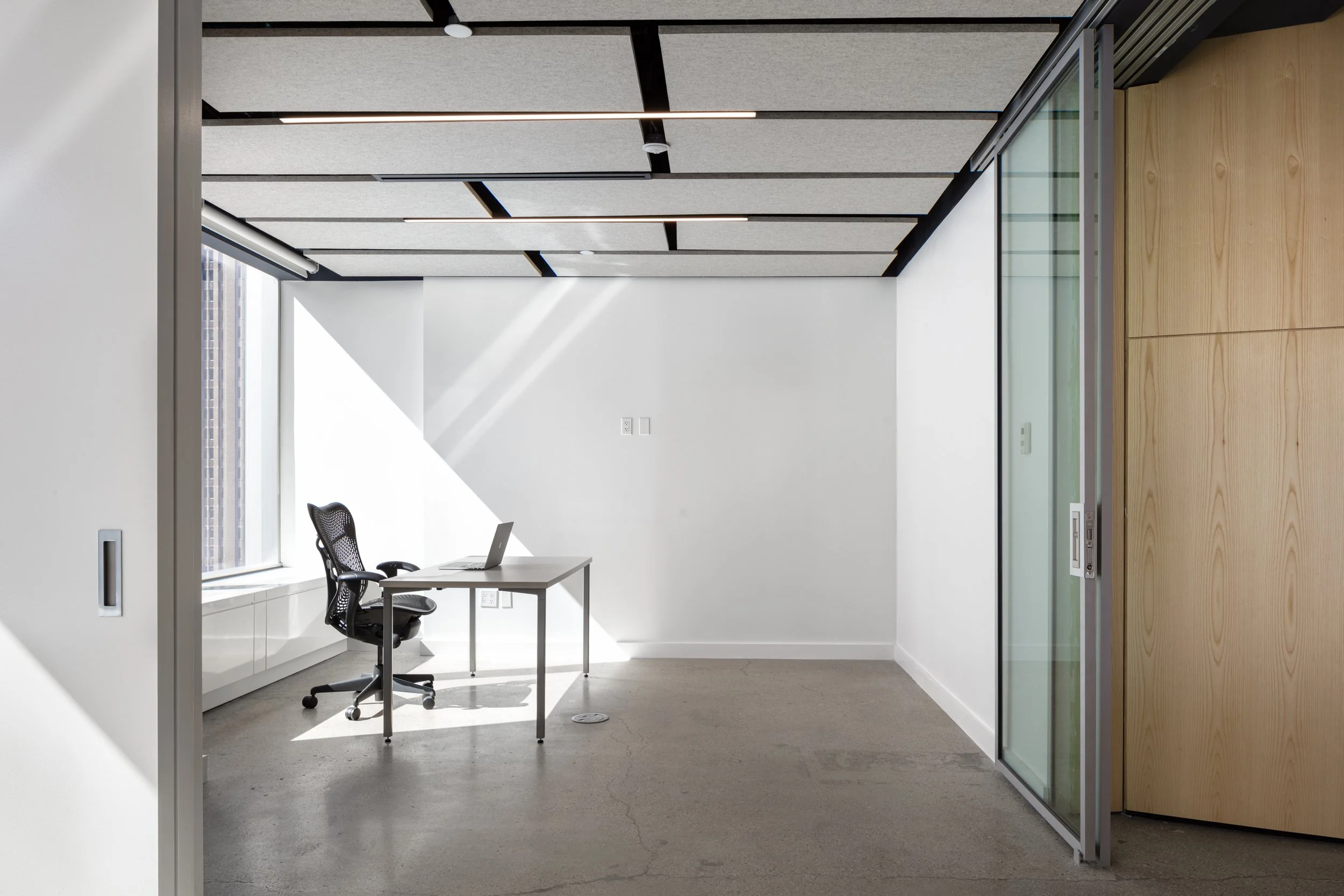 We explored the history of workplaces. Different office prototypes: Empire (first office in England), Taylorism, Streamline, Open, Burolandschaft (German prototype), Action, Cubical, Virtual, Co-Working. The new office prototype would not be a single model with a single point-of-view: open or closed, flexible or fixed, fixtures versus furniture. It would offer all of these—a new flexible office that could vary from enclosed spaces to more open, from private offices to spaces for collaboration. It could change easily within just minutes—using sliding doors, panels, flexible spaces.