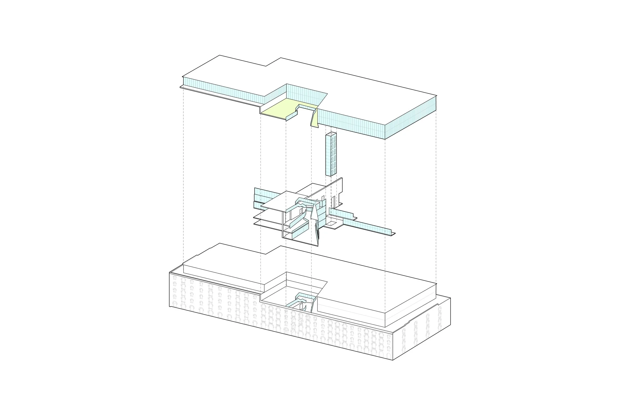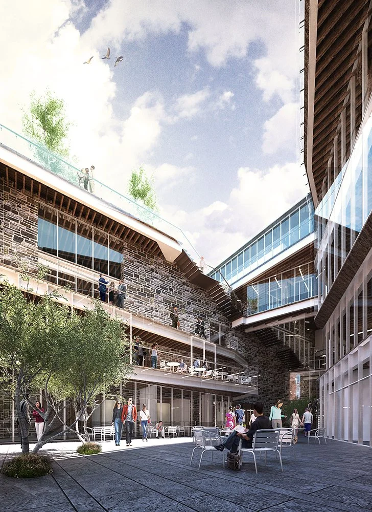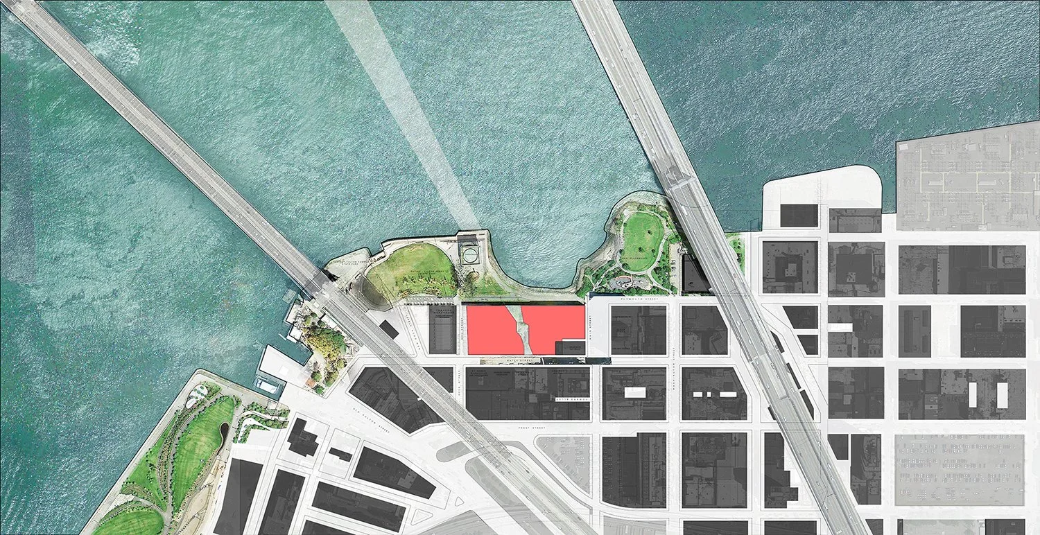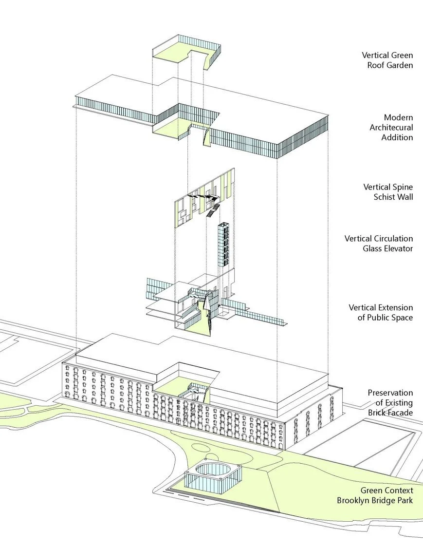 Echoing the ‘anarchitectural’ spirit of Gordon Matta-Clark, our vision for Empire Stores slices holes through the historical warehouses of Empire Stores to open new entryways, openair plazas, and pathways for light. By cutting open seven individual, isolated buildings, we’ve transformed the barrier of Fortress Brooklyn into a series of gateways that welcome and lead the community to the waterfront. Overlapping bridges and terraces, inspired by the drawings of Giovanni Piranesi, offer panoramic vistas of the river that engage with the greenery and amenities of the park. Today, Empire Stores stands not only as a testament to Brooklyn's evolution but also as a symbol of its vibrant future, where industry, history, and public space converge to redefine the borough's identity along its resurgent waterfront.