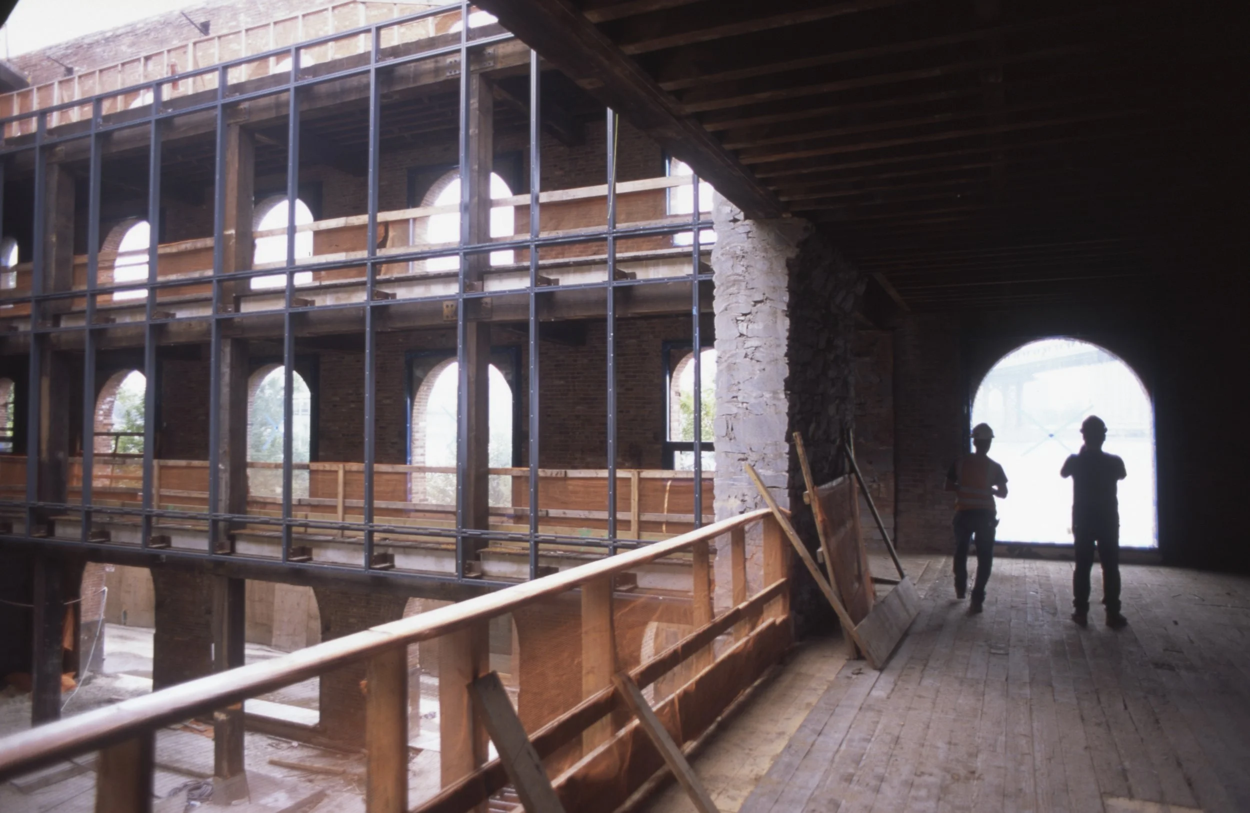 Before it was Dumbo, it was Fortress Brooklyn-- a continuous wall of industrial warehouses and infrastructure that stretched nearly four miles along the Brooklyn waterfront. An urban barrier which once separated the dangerous working waterfront from the upland community, it became the wall which, in the 21st Century, separated Brooklyn from its most valuable growing piece of public space and parkland. In the center of this wall was Empire Stores, the pivotal development which has today reconnected the community to its waterfront and become the centerpiece for the flourishing Brooklyn Bridge park.