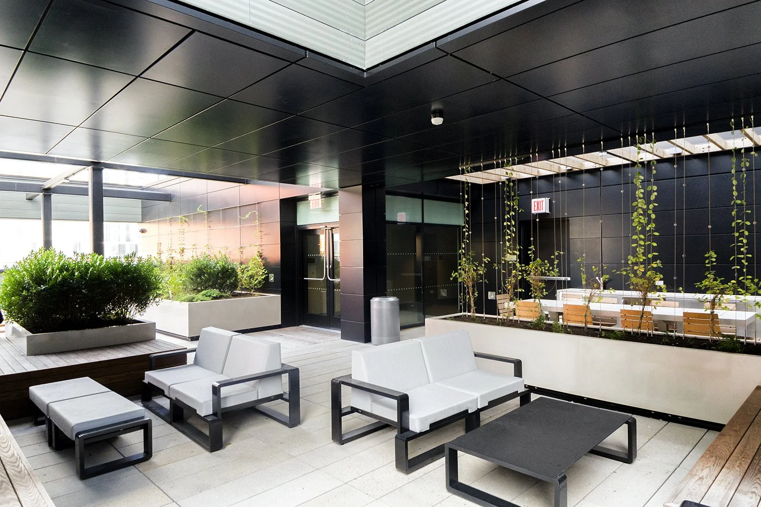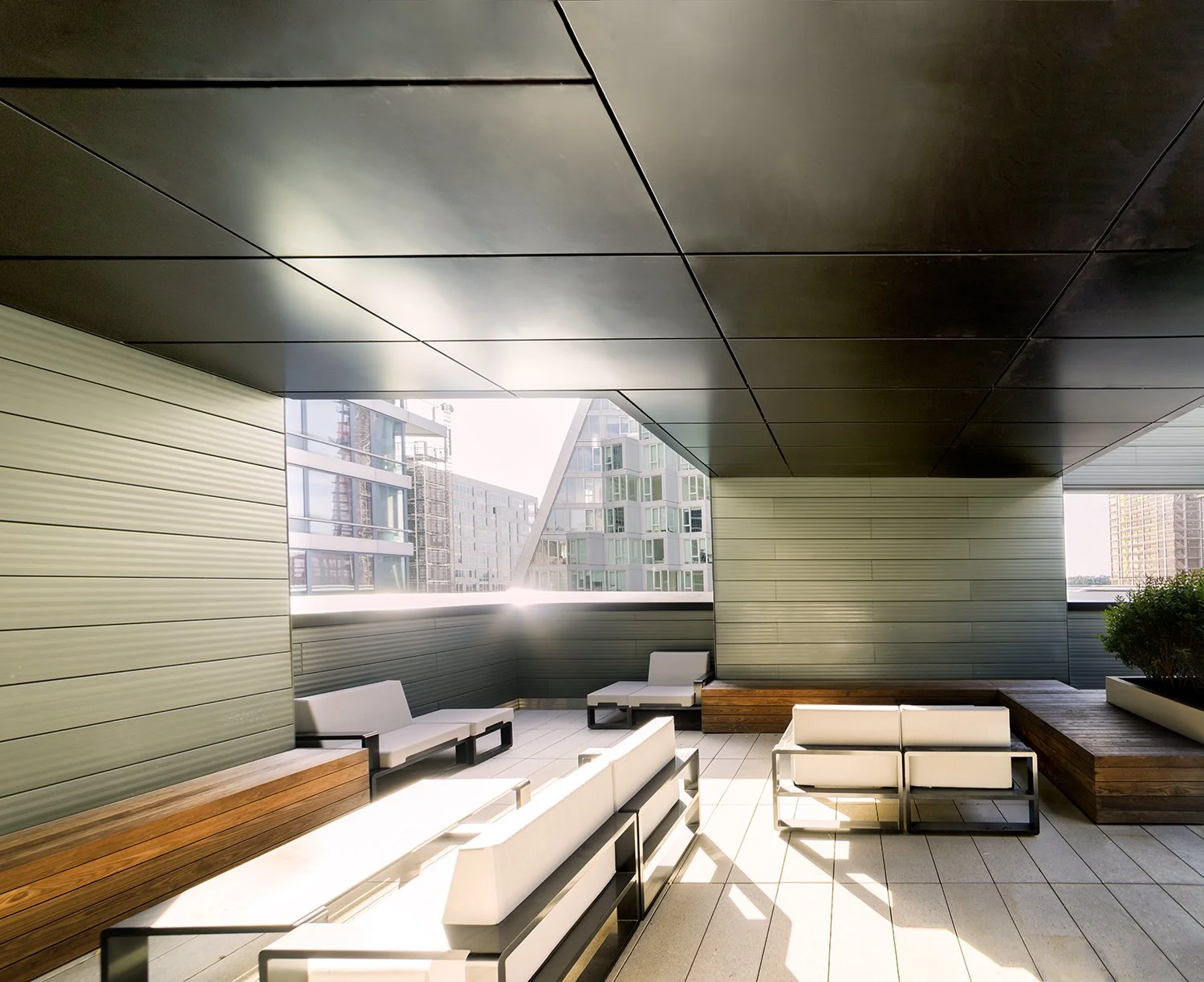 Studio V worked to create a skin and layout for this building that would stand out yet retain the aesthetic quality of the surrounding structures. To this end, we created a sleek, perforated facade that will withstand the elements and maintain elegance over time. The architectural expertise provided by STUDIO V produced a building that is designed, constructed, and operated to optimize use of resources including water and energy, and to optimize the health and well-being of its occupants, while minimizing ecological impact.