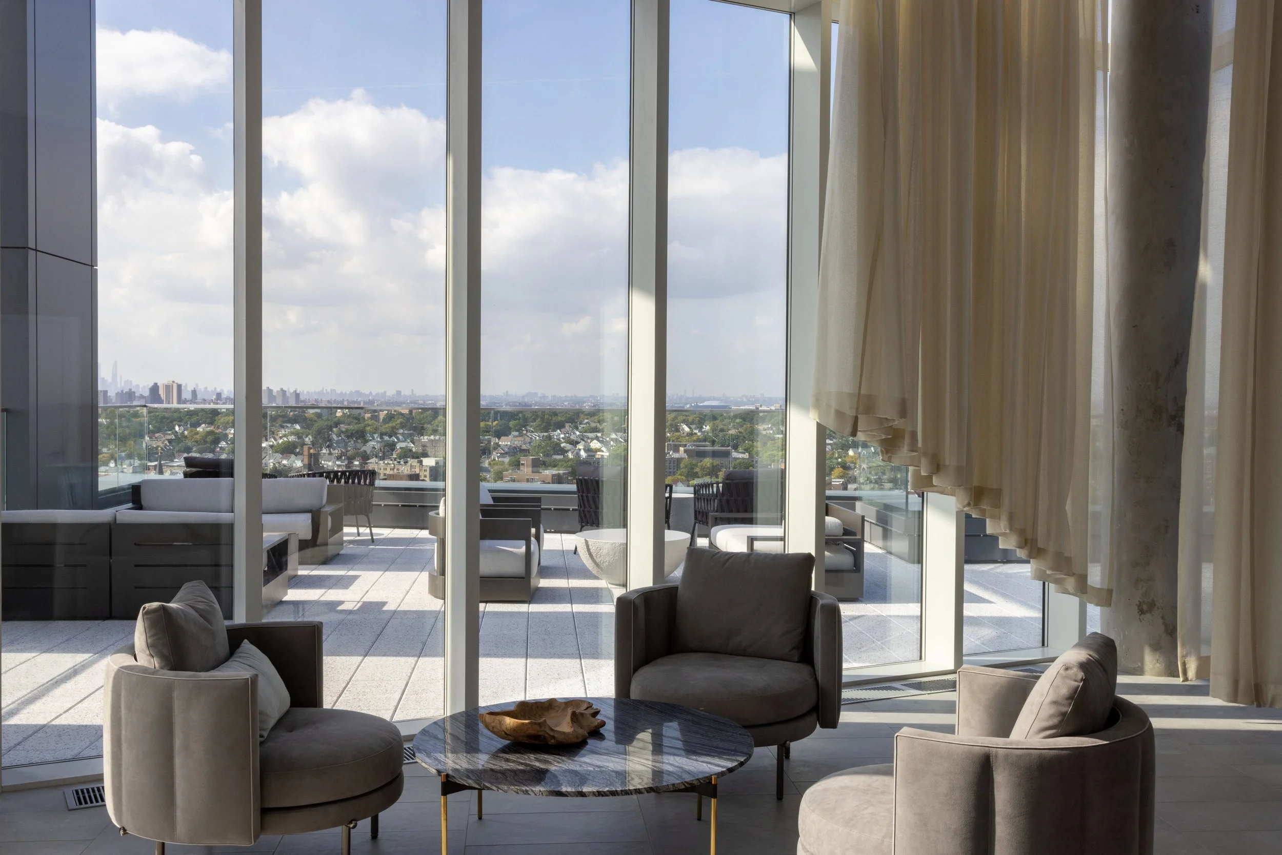 In STUDIO V's first project in Jamaica, Queens, we aimed to stand out with a unique design amidst the area's rapid residential growth. Our goal was to create a vibrant lifestyle destination featuring high-end amenities and exceptional views of Manhattan, Jamaica Bay, and local parks.